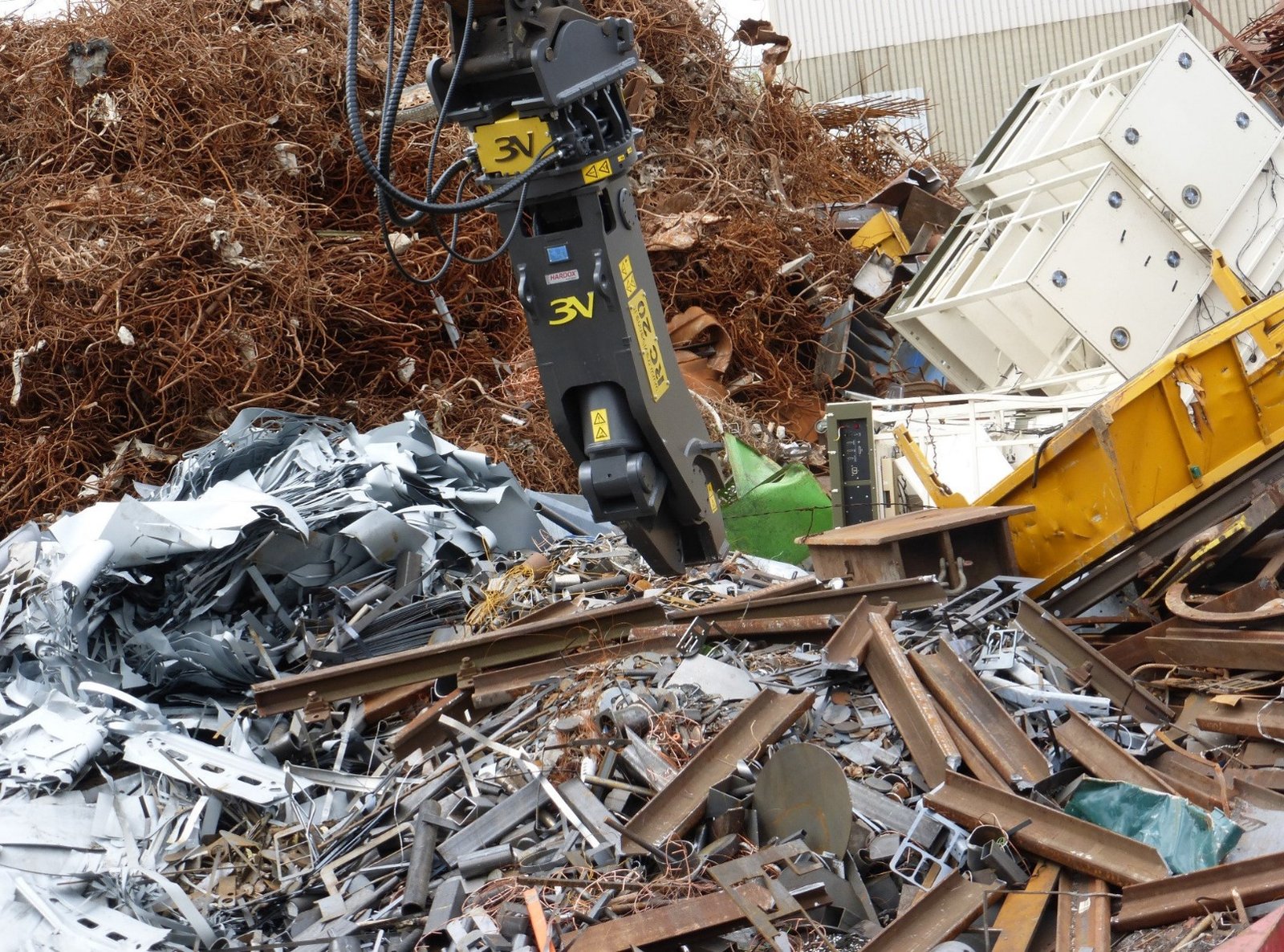 Conçue et fabriquée par la société TREVIBENNE, leader mondial des matériels de démolition. Cisaille acier pour les chantiers de démolition industriels. Et pour les professionnels du recyclage ferraille.