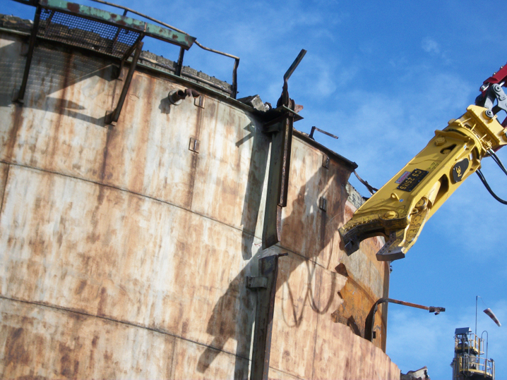 Conçue et fabriquée par la société TREVIBENNE, leader mondial des matériels de démolition. Cisaille acier pour les chantiers de démolition industriels. Et pour les professionnels du recyclage ferraille.
