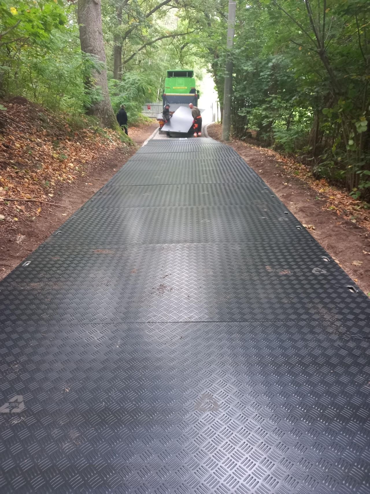 La plaque de roulage est la solution idéale en tant que revêtement temporaire pour protéger les chemins de chantier, le gazon, les travaux de route.